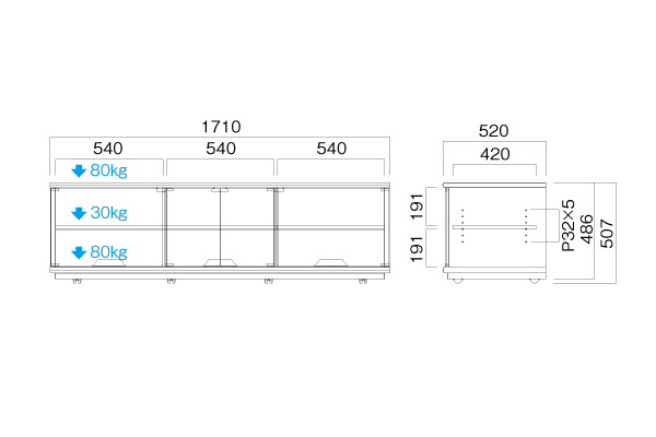 SIZE | 幅 1710 × 奥行き 520 × 高さ 507 (mm) |