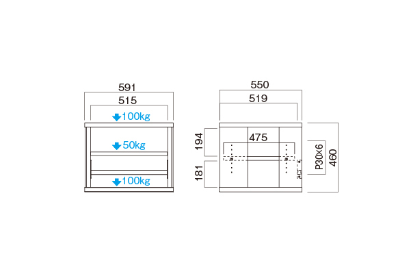 備考 | 天板 耐荷重:100kg以下 棚板 耐荷重:50kg以下 底板 耐荷重:100㎏以下 |
