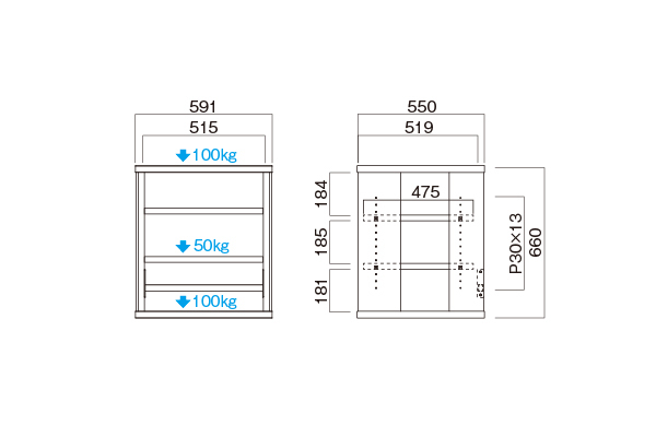 | 備考 | 天板 耐荷重:100kg以下 棚板 耐荷重:50kg以下 底板 耐荷重:100㎏以下 |