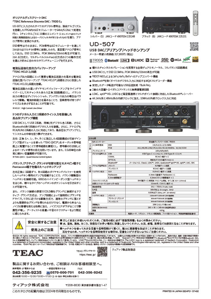 - 自社製ディスクリートD/AコンバーターTRDD 5(TEAC Reference Discrete DAC)を搭載