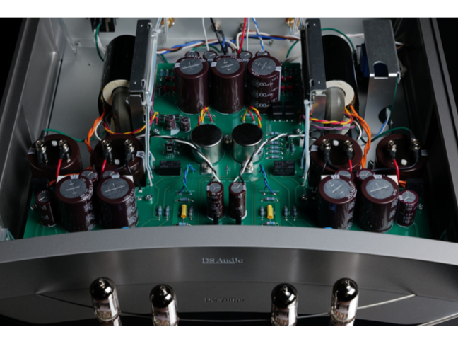 TB-100専用に厳選されたクアッドマッチドECC82(12AU7)を採用しております。社内専用ツールにより動作状態での真空管のばらつきが1%以内(0.1dB以内)となるようにマッチングを行うことで最高のパフォーマンスをお届けいたします。各チャンネルには、内側に電圧増幅用、外側に出力バッファー用の真空管を配置しており、豊かで透明感のある音質を実現しております。シングルアンプを2段重ねたシンプルな増幅段と、低インピーダンスなカソードフォロワー出力段により、ピュアでダイナミックなサウンドを再現いたします。