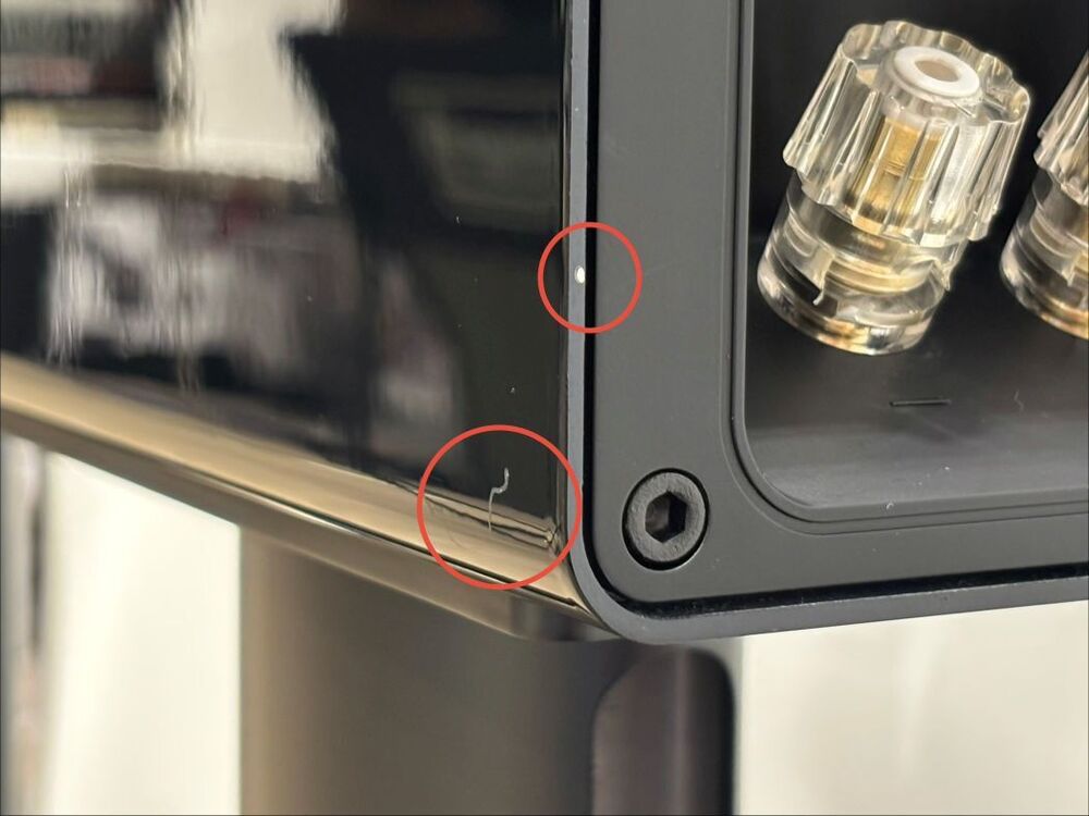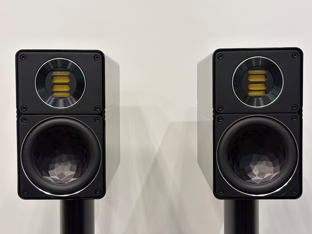 300LINEの最大の特徴であるアルミ・エンクロージュアは6.5mm厚に達する継ぎ目のない押し出し成型品です。トィータとウーハーのフレーム部分が従来の樹脂からアルミ・ダイキャストに替ったことで、フロント・バッフルそのものがエンクロージュアと同素材の肉厚あるアルミ製となり、キャビネット全体の剛性が飛躍的に高まりました。