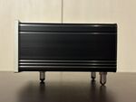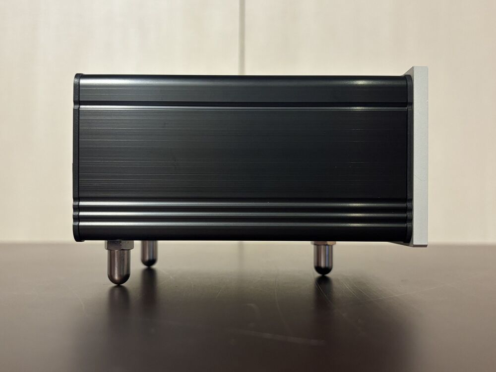 ノイズ対策と振動制御: アルミ削り出しのフロントパネルと堅牢な金属筐体を採用。底面には3点支持のソフトスパイクを装備し、スパイク受けなしで点接触による振動遮断が可能です。
